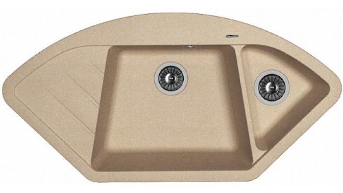 Угловая мойка классической формы с двумя чашами для кухни Florentina Веста изготовлена из композитного материала.