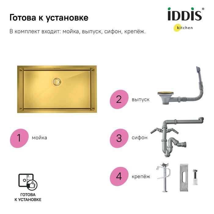 Кухонная мойка IDDIS Edifice EDI74B0i77 74см золото матовое купить