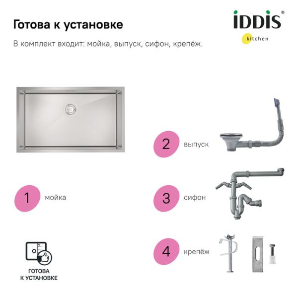 Кухонная мойка IDDIS Edifice EDI74S0i77 74см сатин купить