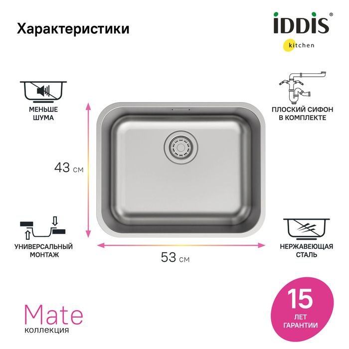 Кухонная мойка IDDIS Mate MAT53S0i77 53см сталь купить