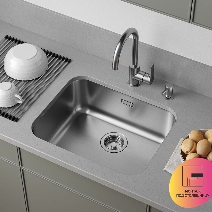 Сатиновая мойка из коллекции Mate – простое универсальное решение для современной кухни по привлекательной цене. Современный лаконичный дизайн без крыла.