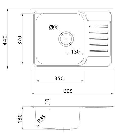 Мойка Sound – функциональность и актуальный дизайн, который подойдет почти к любой кухне. Крыло удобно использовать для сушки столовых приборов.