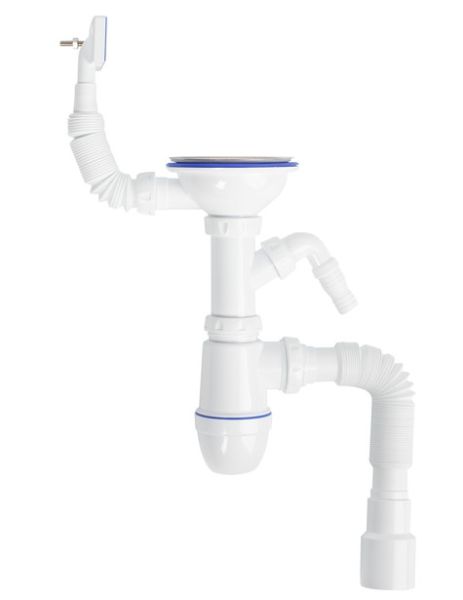 Сифон с отдельным отводом для стиральной/посудомоечной машины с обратным клапаном и гофрированными отводами для удобства подключения. Гарантия на стальные мойки IDDIS® – 15 лет, на сифон – 2 года, на крепления – 1 год.