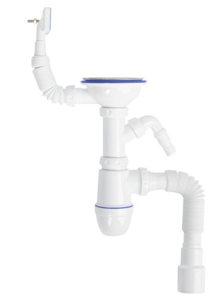 Сифон с отдельным отводом для стиральной/посудомоечной машины с обратным клапаном и гофрированными отводами для удобства подключения. Гарантия на стальные мойки IDDIS® – 15 лет, на сифон – 2 года, на крепления и выпуск – 1 год.