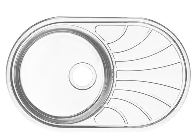 Мойка Suno для тех, кто предпочитает классику: округлые очертания чаши и эстетичный веерообразный узор крыла. Отлично подойдет для небольших кухонь, где на счету каждый рабочий сантиметр. На вместительном крыле удобно сушить столовые приборы. Имеет текстуру с эффектом шелковой поверхности благодаря специальной обработке стали.