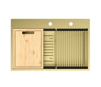 Кухонная мойка Lemark Iordana 780 9938118 в комплекте с разделочной доской ролл-матом и коландером светлое золото
