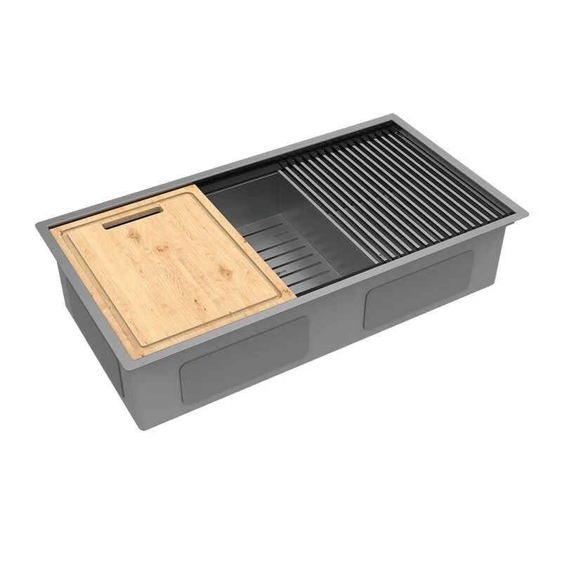 Устойчивость к коррозии. Нержавеющая сталь SUS 304 характеризуется наличием 18% хрома и 10% никеля, что гарантирует ей высочайшую устойчивость к коррозии. PVD-покрытие защищает мойку от воздействия влаги и агрессивных веществ, что особенно важно для кухонной мойки.