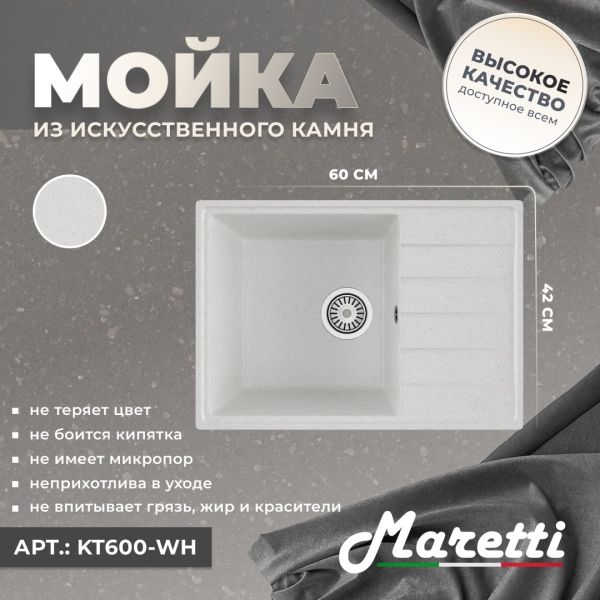 Кухонная мойка Maretti Kitchen KT600-WH, белый купить