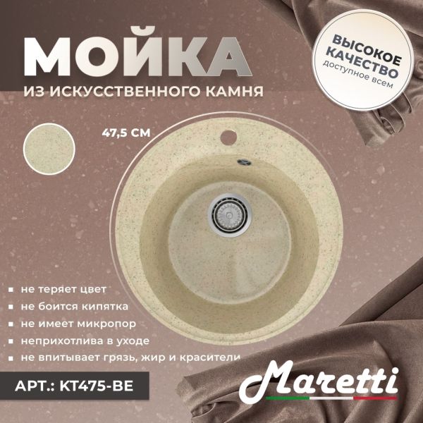 Кухонная мойка Maretti Kitchen KT475-BE, бежевый купить