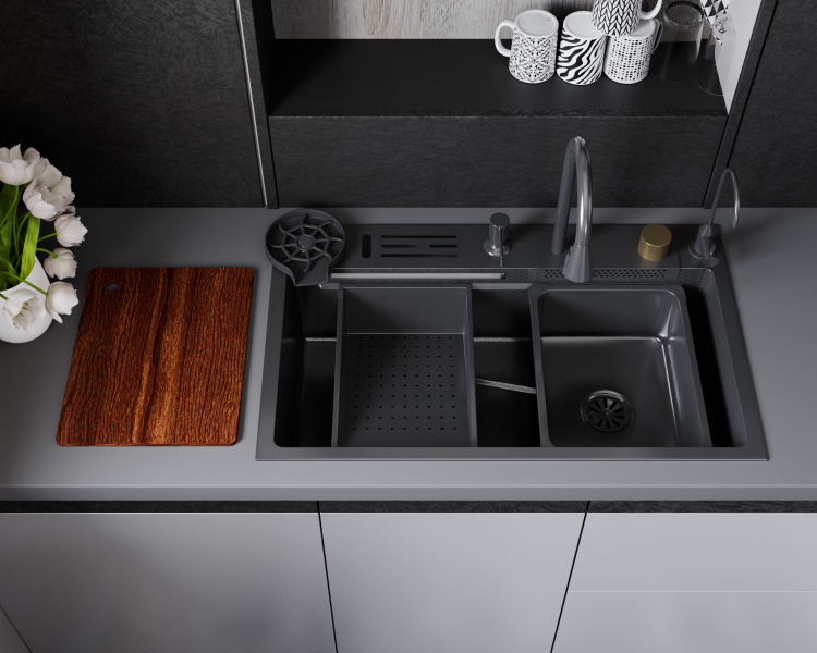Многофункциональные мойки кухонные сделаны вручную из высококачественной нержавеющей стали SUS304, обработанной холодом для придания изделию прочности. Мойки идеально выдерживают перепады температуры, практичны и износостойки.