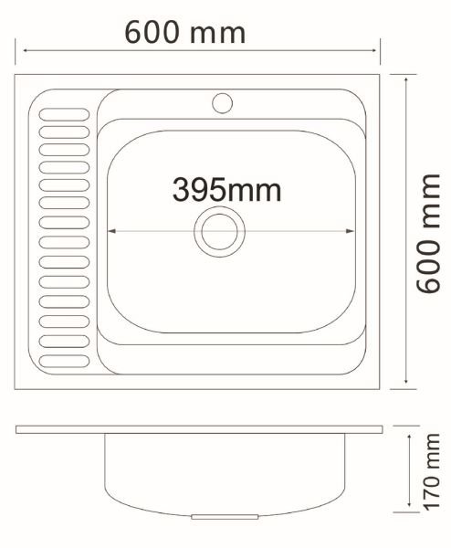 Кухонная мойка глянцевая правая, толщина 0,6мм, размер 600x600мм, глубина чаши 160мм материал нержавейка, в комплекте евро сифон