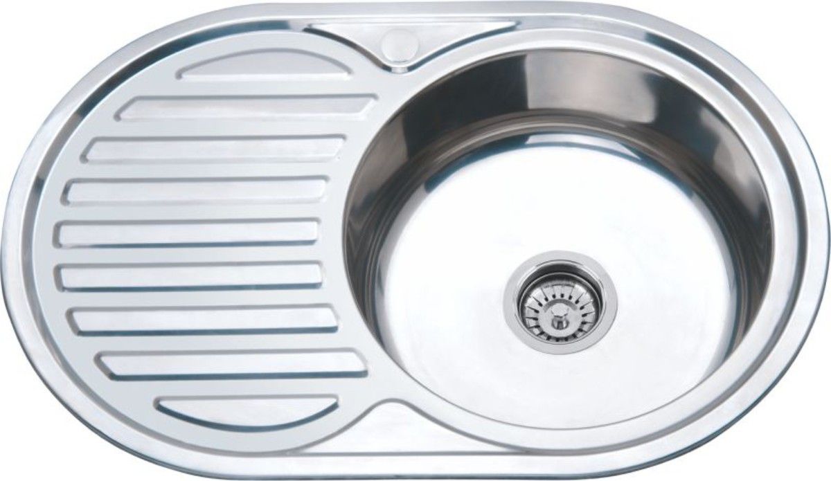 Кухонная мойка глянцевая, врезная правая, глубина 180, толщина 0,8, материал нержавейка, в комплекте евро сифон