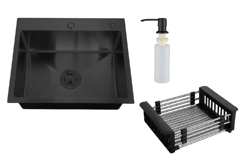 Кухонная мойка РМС MR-5050BL с корзиной и дозатором воронёная сталь