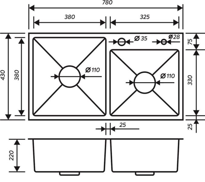 Кухонная мойка РМС MR-7843 с корзиной и дозатором нержавеющая сталь