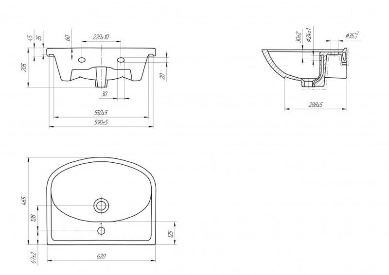 • Отверстия под смеситель:
