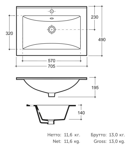 Раковина Керамин Бергамо Нова 70 создана из 100% сантехнического фарфора и отличается надежностью и долговечностью.