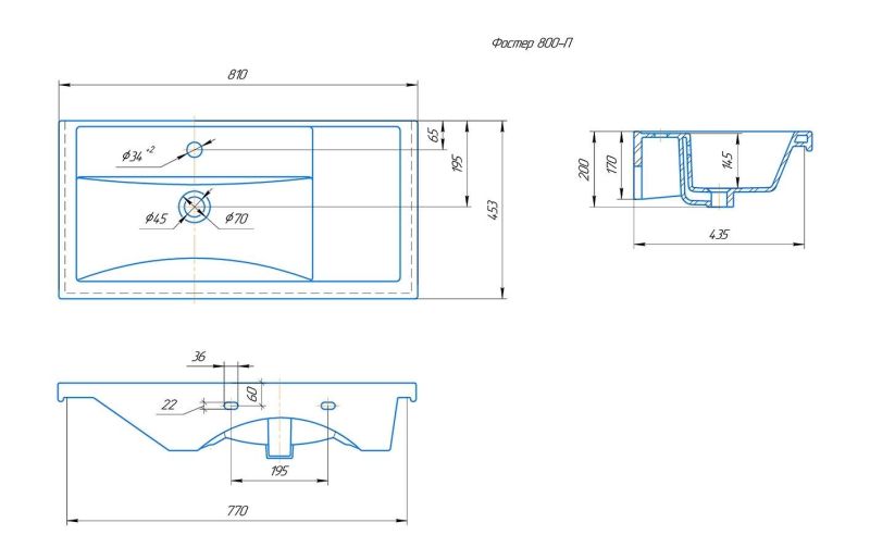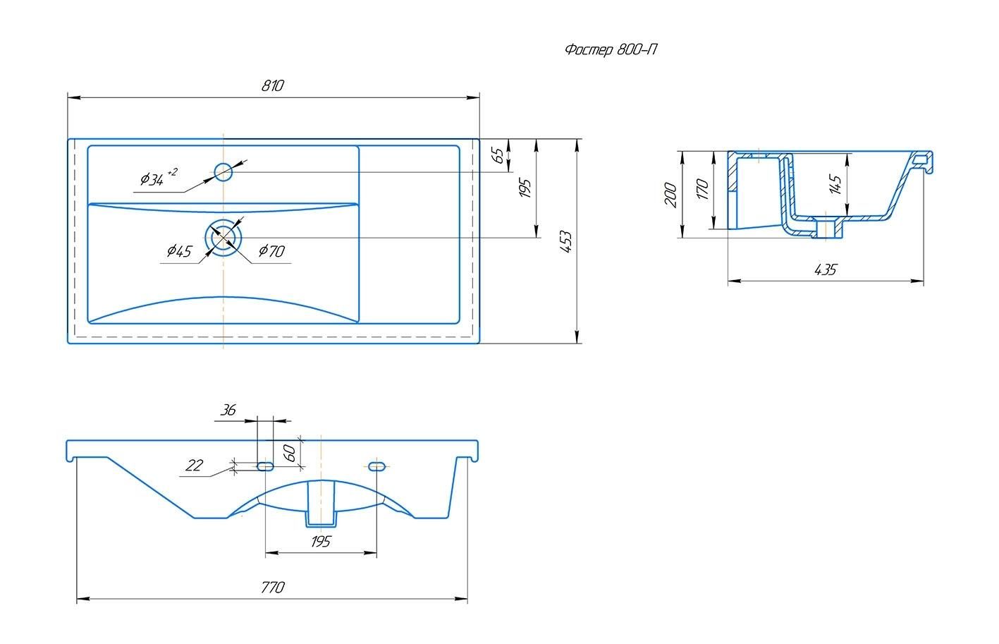 Мебельная раковина Kirovit Фостер 4640021065198 крыло справа 80см белый купить