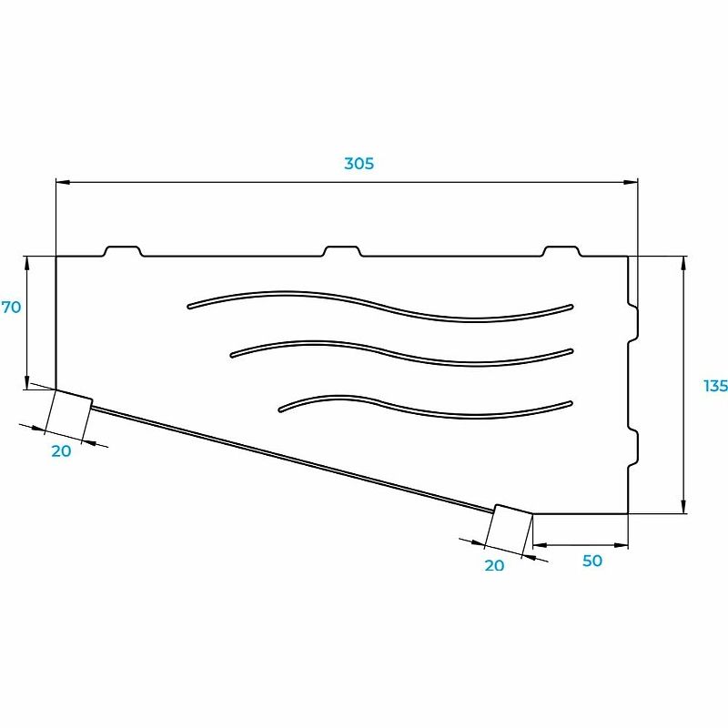 Металлическая полка RGW MT-11W L 49279911-01L угловая БелаяПолка для душевой зоны RGW MT - современное решение для душевого пространства. Изготовлены из нержавеющей стали AISI 304, прочные, не ржавеют. Форма и размер полки, позволяет достичь максимальной стабильности конструкции и достаточной вместительности душевых принадлежностей, а легкая и быстрая установка в межплиточные швы без сверления плитки выгодно выделяет данное решение. Легкий монтаж без сверления плитки: Полки для душевой зоны, разработанные специально для монтажа после завершения ремонта, т. е. укладки плитки. Легко устанавливаются в любые угловые зоны в помещении, для этого прорезается шов между плитками, далее полочка вклеивается между плиткой на любой бытовой герметик. Полочки для душевой зоны RGW MT идеально подойдут для установки в душевое пространство, или в любую комнату, а так же найдут применение, на кухнях или в других помещениях.
