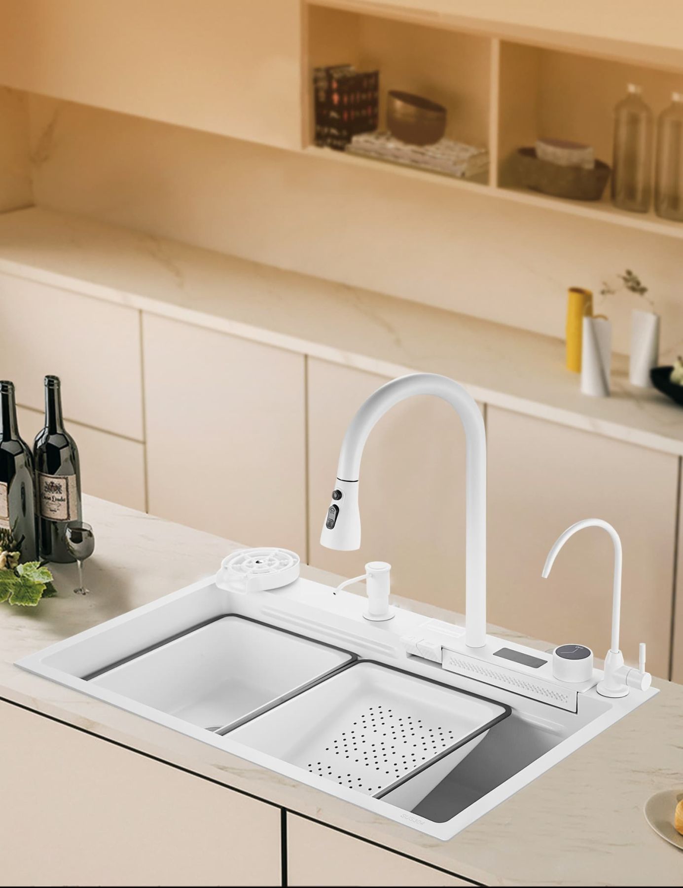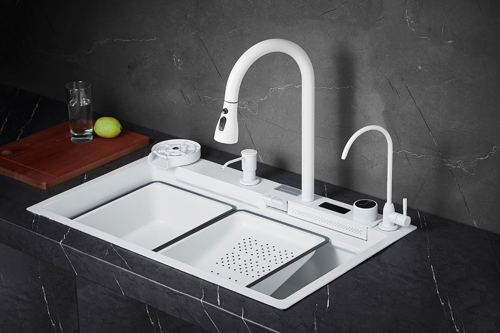 Многофункциональная кухонная мойка Savol S-SC002W с водопадом 75см белый купить