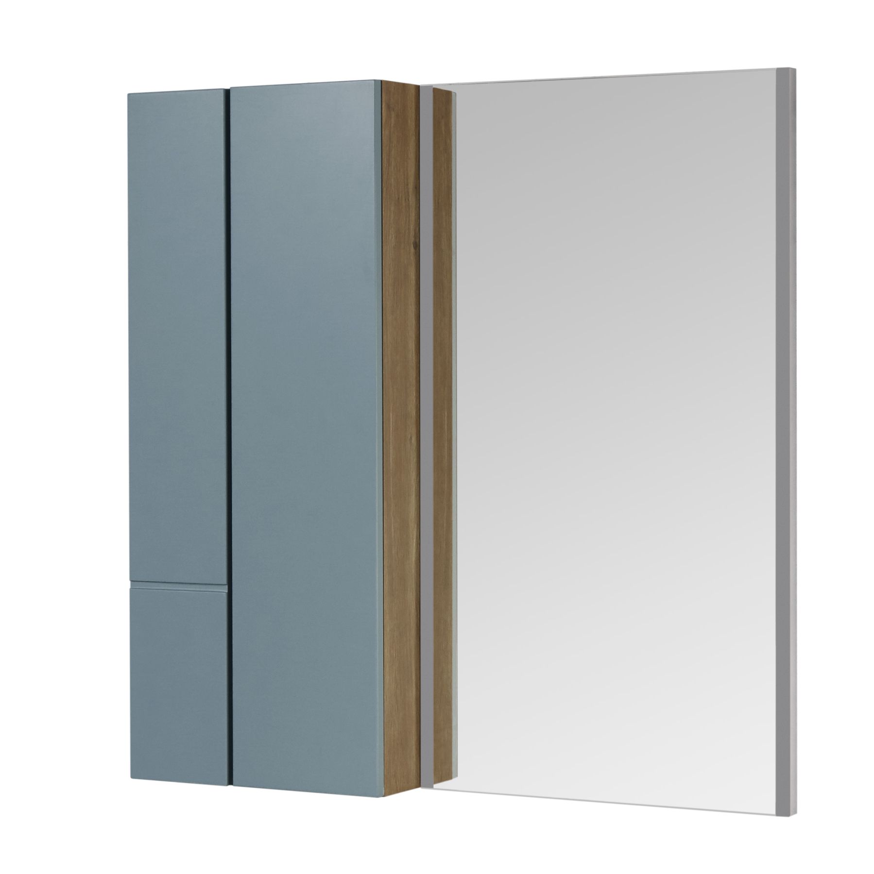 - Открывается модуль за фасад. Внутреннее пространство шкафчика поделено на ассиметричные секции, что позволяет разместить косметические различные косметические средства