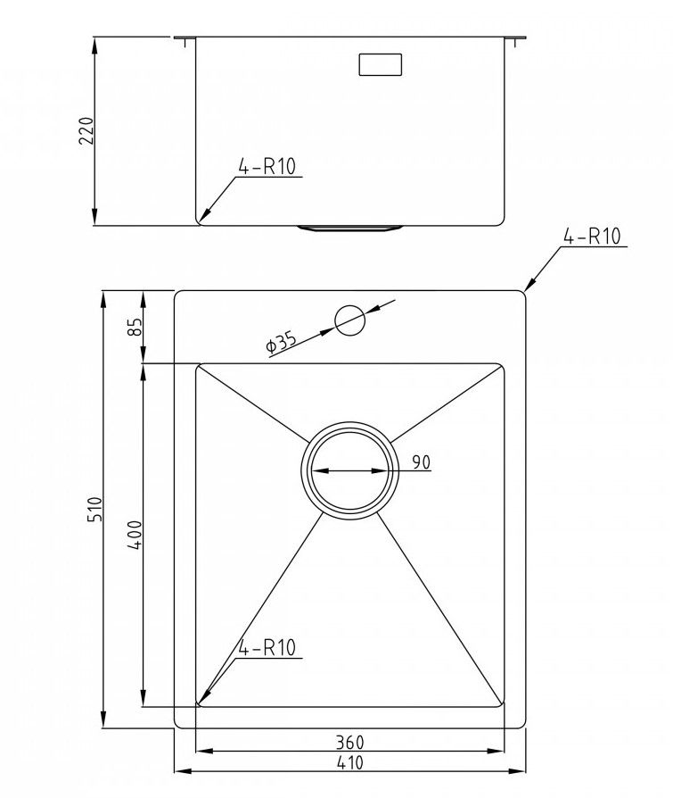 - Диаметр слива: 9 см