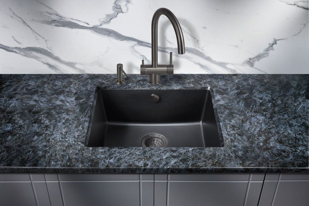Прямоугольная мойка для кухни MILACIO Leon 55 Cuarzo (MC.77081) из искусственного камня, выполненная в черном матовом цвете, впишется в любой дизайн и станет ярким украшением вашей кухни.