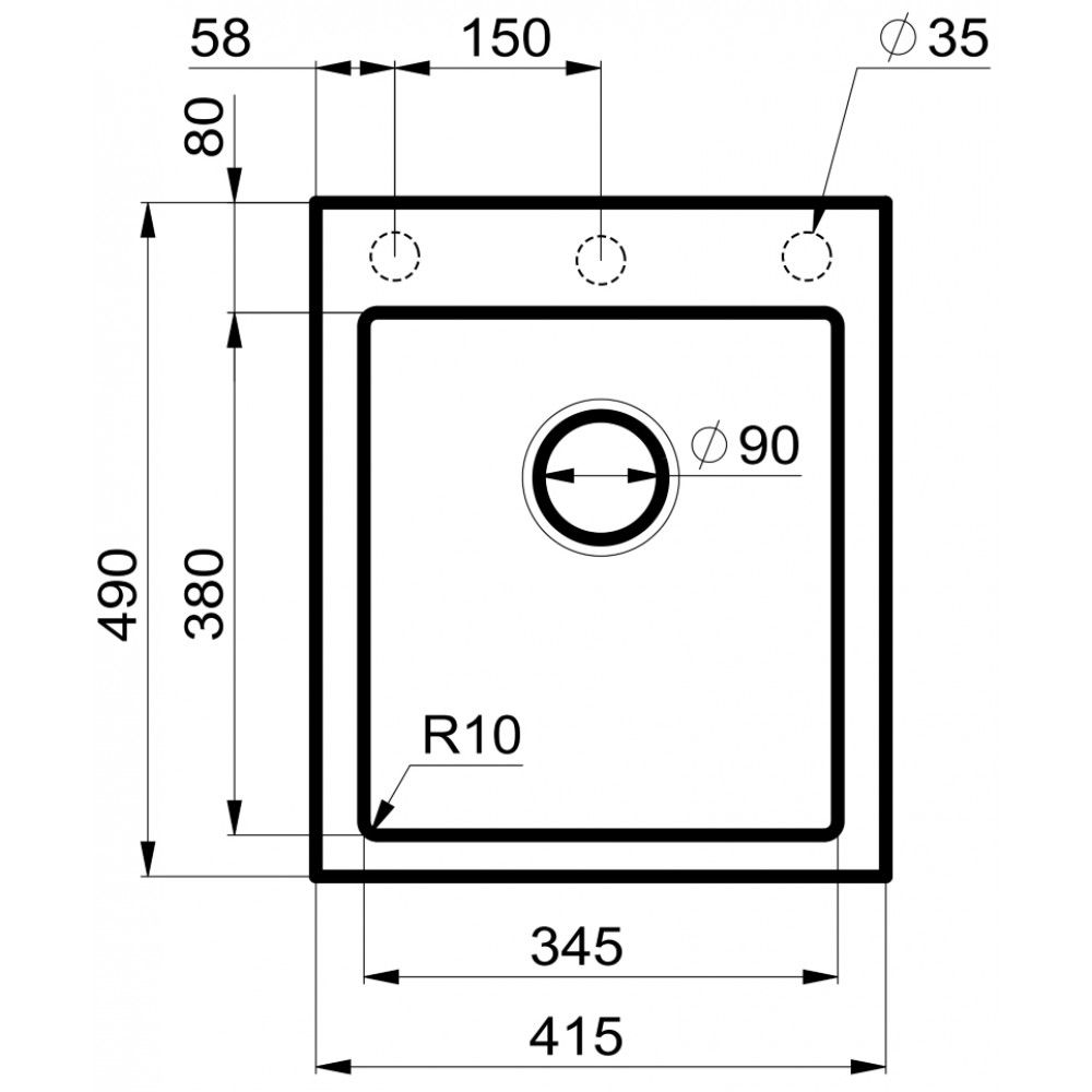 • Отверстия под смеситель: