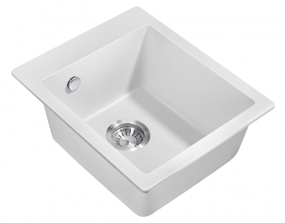 Кухонные мойки MILACIO — эталон стиля и качества даже для самых искушенных ценителей дизайнерской сантехники.Каменная врезная прямоугольная мойка для кухни MILACIO Murcia 42 Cuarzo (MC.77042), выполненная в белом матовом цвете, воплотила в себе лучшие особенности: безупречный вид, лаконичный дизайн, прочность конструкции и комфортное использование. Раковина изготовлена из высококлассного кварцевого композита — смеси частиц кварца и полиэфирных смол — красивого и современного материала, обладающего уникальной прочностью. Искусственный камень устойчив к любым воздействиям — царапинам, ударам, высоким и низким температурам (не боится кипятка и горячей посуды), бытовой химии, пищевым красителям, свету и загрязнению. Даже спустя годы изделие не потеряет цвет и форму и будет должным образом выполнять свои функции. Кухонная кварцевая мойка достаточно компактна, чтобы лучшим образом использовать пространство в небольшой комнате. Размер компенсируется глубокой чашей квадратной формы — в нее поместятся сразу несколько комплектов посуды. Благодаря правильной геометрии мойки капли не разбрызгиваются в стороны, а специальное водоотталкивающее покрытие не дает воде растекаться по поверхности, что сводит загрязнение к минимуму.При этом уход за раковиной достаточно прост: пятна легко убираются чистящими средствами — без подтеков и разводов.