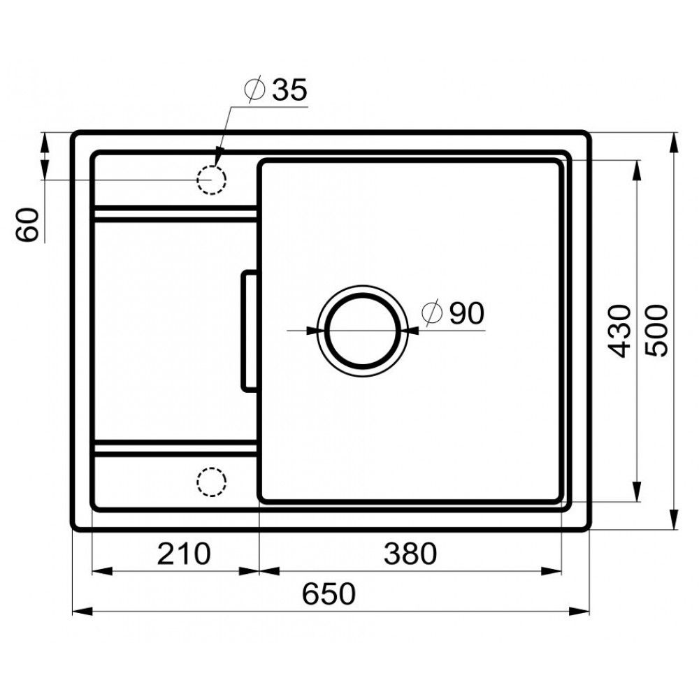- имеются две метки под отверстия для смесителя/дозатора;