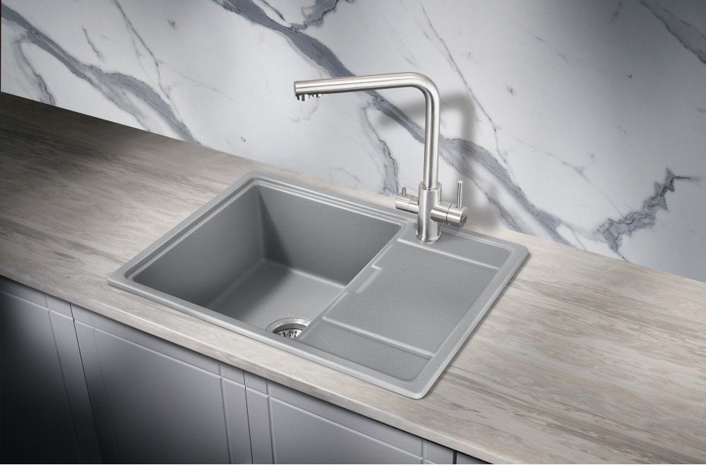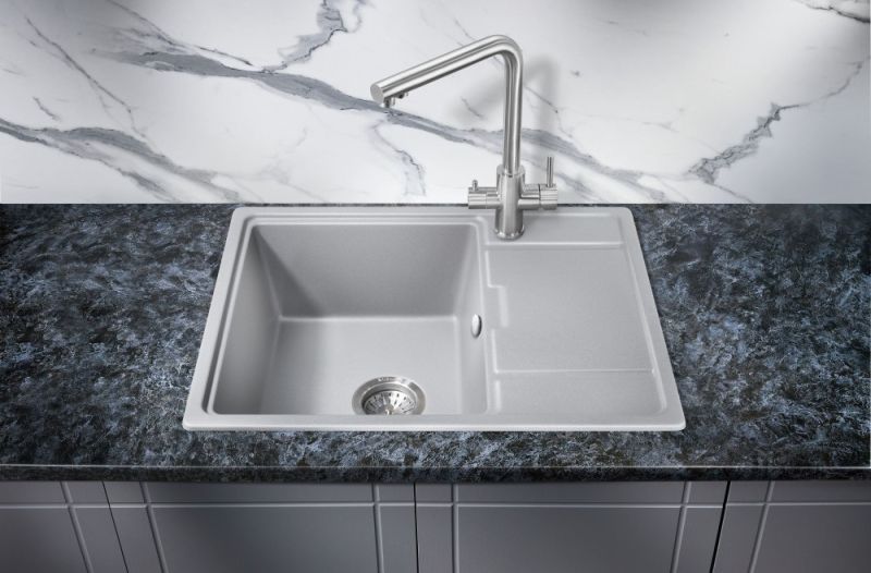 Красивое исполнение каменной раковины дополняют прочные износостойкие материалы высочайшего европейского качества: в составе присутствуют кварцевый песок (кварц) и полимерные смолы, которые делают продукт устойчивым перед любыми воздействиями — механическими, химическими, температурными, световыми. Это значит, что кварцевая мойка не боится царапин и абразивов, кипятка и горячей посуды, ударов, бытовой химии. Она не впитывает жир и грязь, не выцветает и не деформируется со временем, а сохранит первоначальный вид на весь срок эксплуатации. При этом за ней легко ухаживать: пятна убираются самыми простыми чистящими средствами. Еще один большой плюс — на поверхности не остаются отпечатки пальцев.