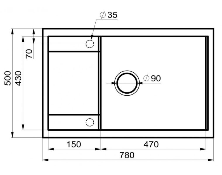 - Большая вместительность, удобство. Одна глубокая чаша квадратной формы вмещает сразу несколько комплектов посуды. А большое крыло можно использовать в качестве сушилки для посуды и продуктов или подставки под чистящие средства. При этом сама раковина компактна и не занимает много места на тумбе. Кроме того, она оборачиваемая: можно расположить чашу или слева, или справа — в зависимости от ваших предпочтений и удобства.