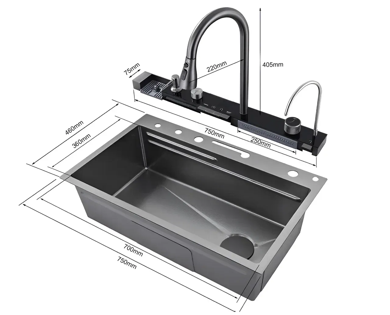 Мойка кухонная Ceruttispa GLORIA nano black CT10356 многофункциональная серая