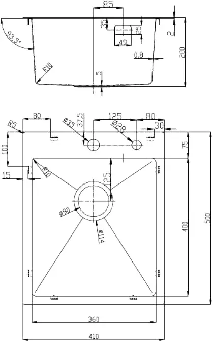 • Отверстия под смеситель: