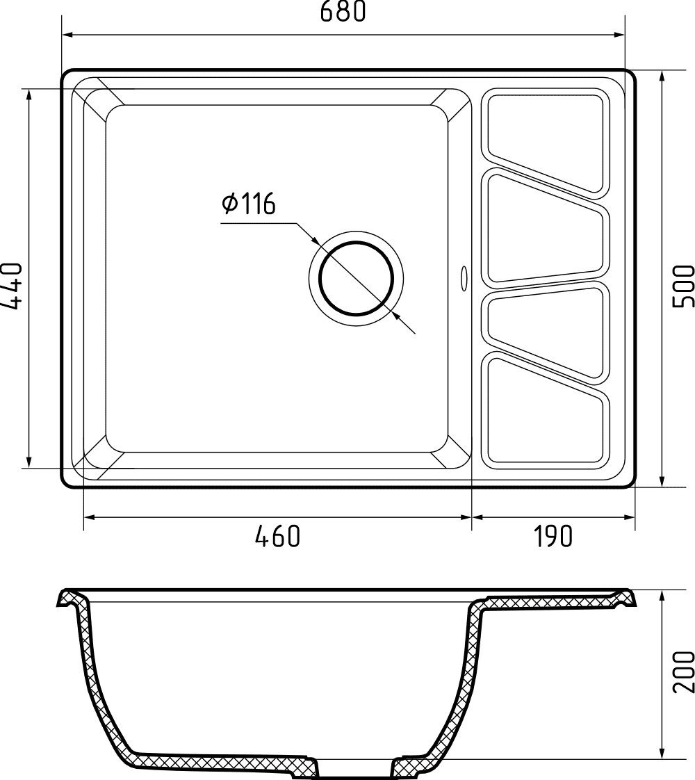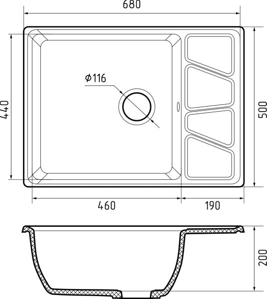 Мойка кухонная GranFest Чёрная Vertex V-680 L чер купить