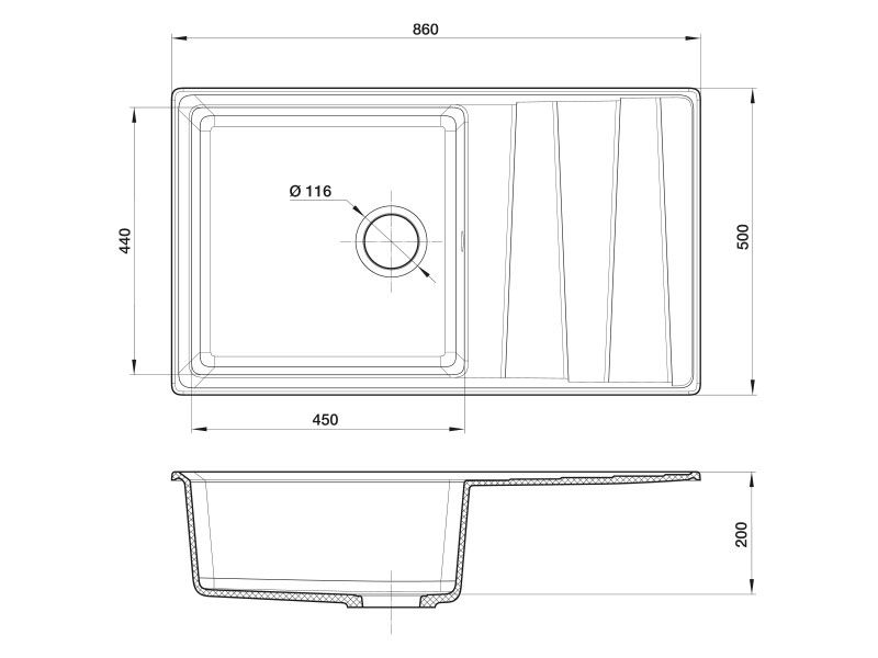 Общий размер: 860х500x200 мм