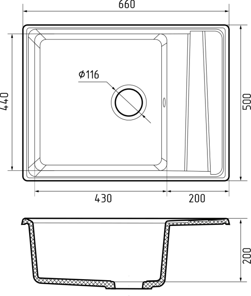 Мойка кухонная GranFest LEVEL LV-660L топаз