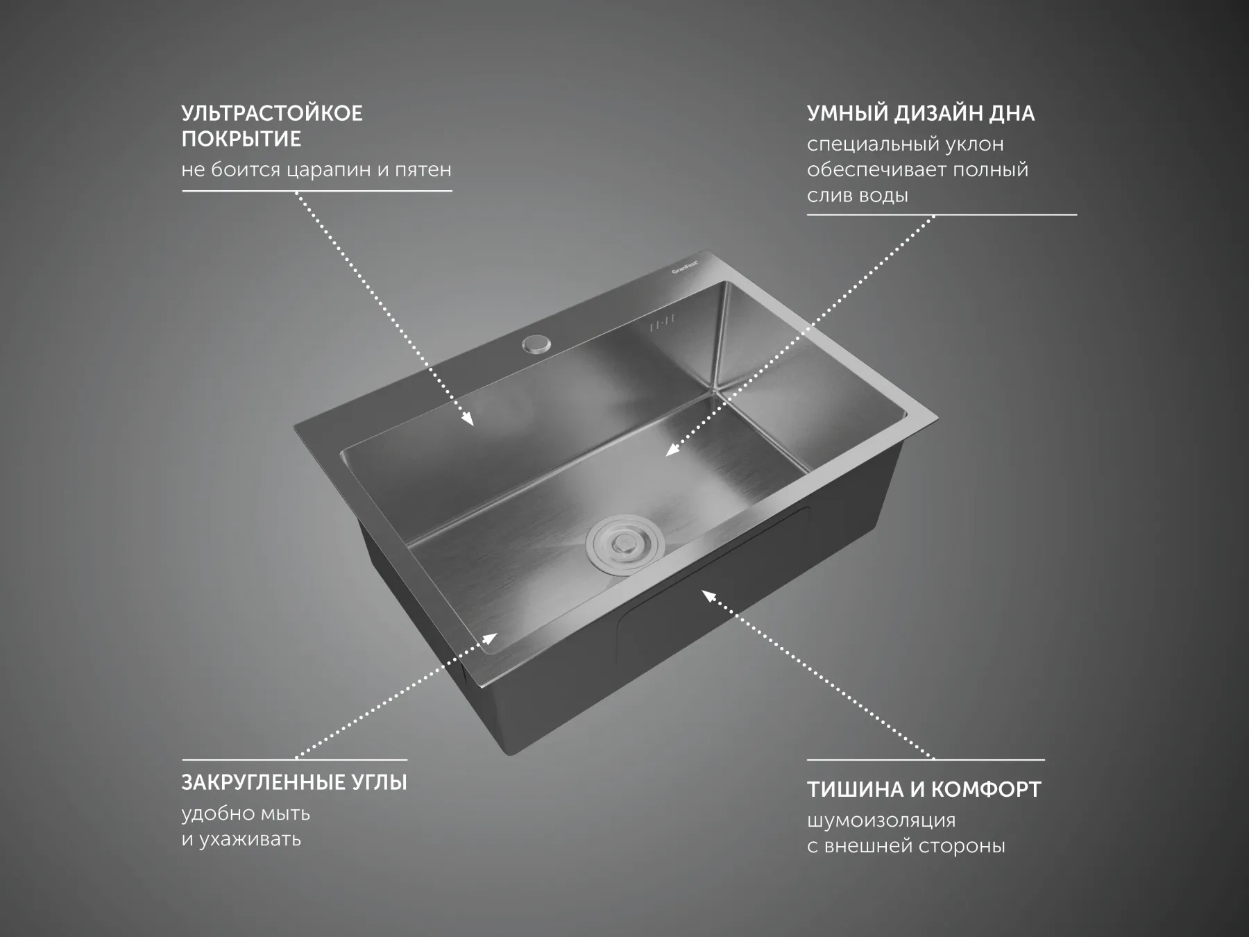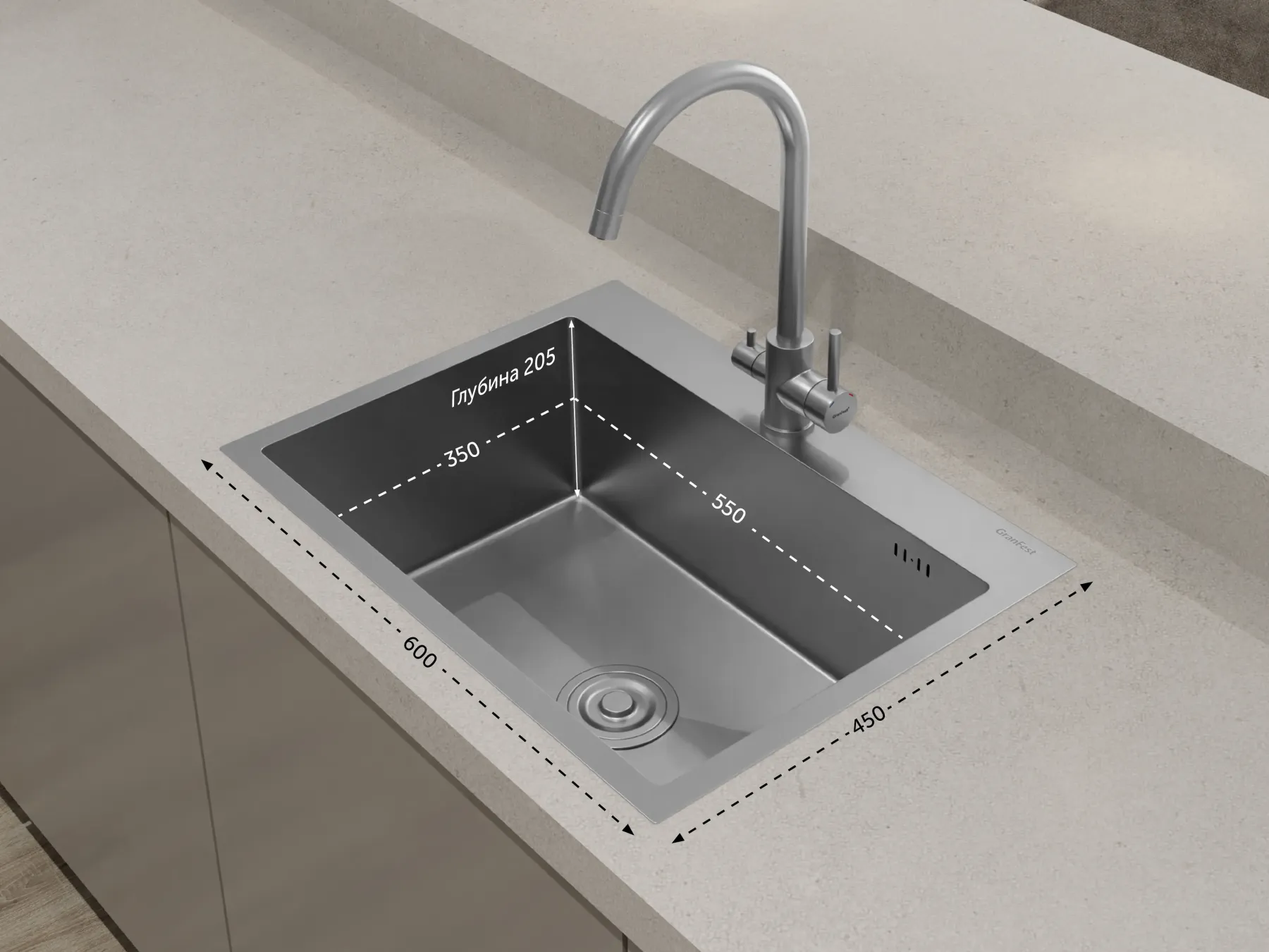 Мойка кухонная GranFest METAL 6045 нерж нержавеющая сталь Подробнее