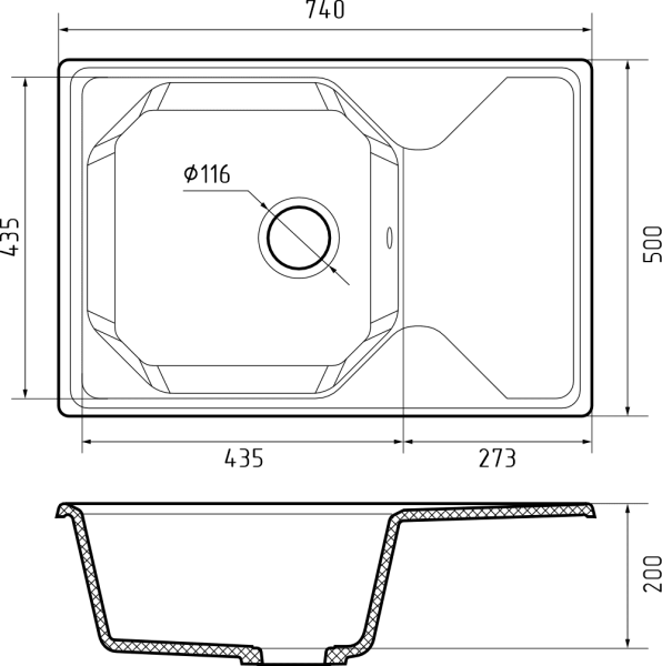 Мойка кухонная GranFest Песок Unique U--740 L пес