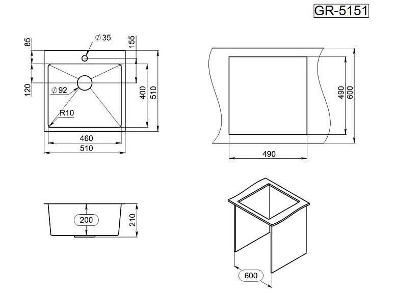 Мойка кухонная Granula 5151, ЗОЛОТО САТИН