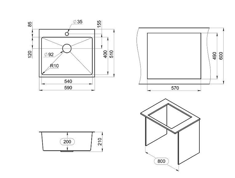 Мойка кухонная Granula 5951, СТАЛЬ САТИН