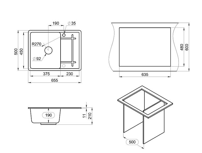 Мойка кухонная Granula 6501, ЧЁРНЫЙ Подробнее
