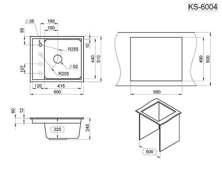 Мойка кухонная Granula Kitchen Space 6004, АРКТИК