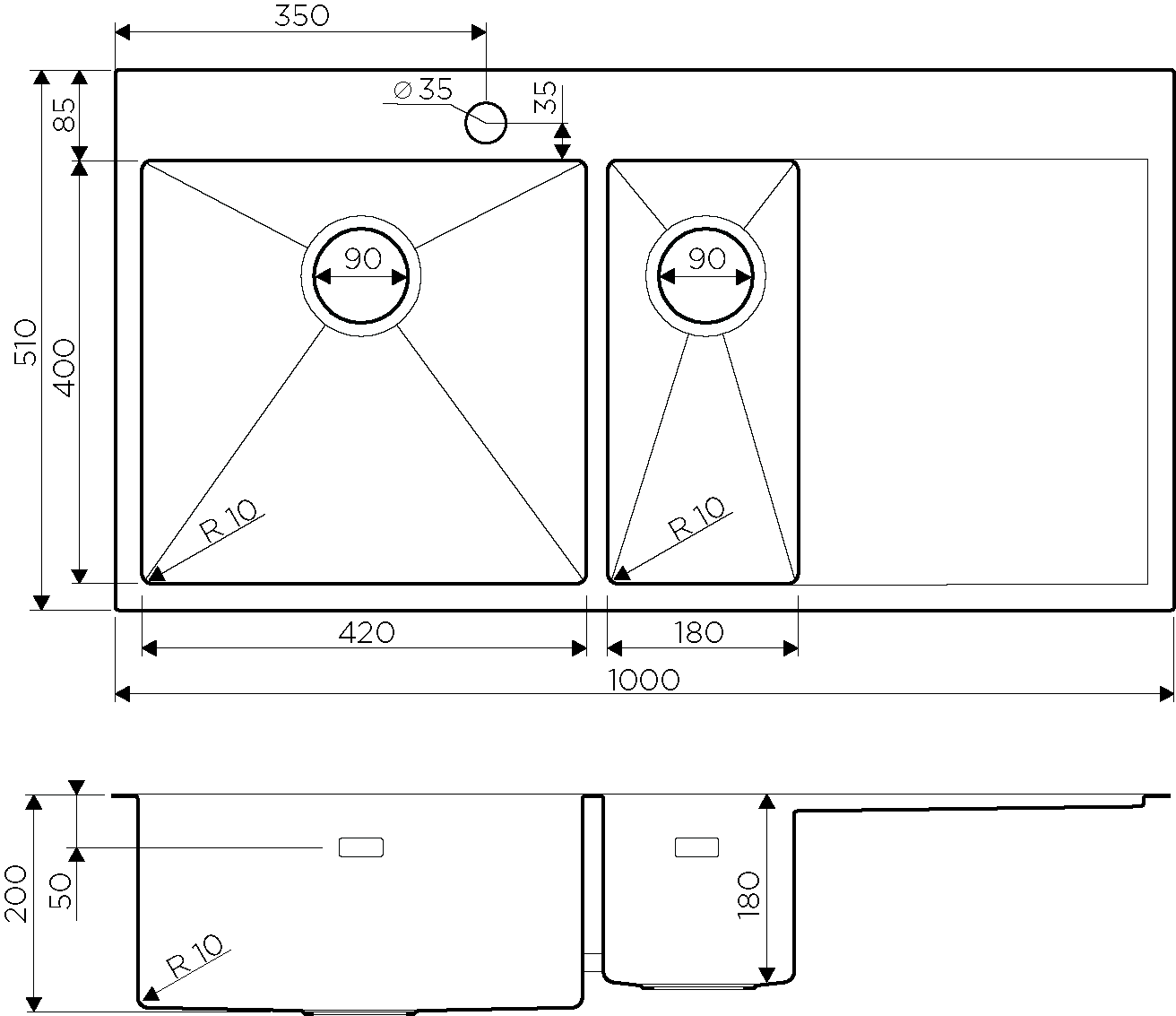 • Гарантия на мойки из нержавеющей стали: 15 лет; • Метод производства: ручная; • Оригинальный цвет: нержавеющая сталь; • Японская высококачественная хромоникелевая нержавеющая сталь; • Матовая полировка, устойчивая к появлению царапин; • Упаковка обеспечивает максимально безопасную транспортировку. Мойка упакована в пакет из нетканного материала, уголки из пенопласта, картонную коробку; • Корпус мойки обработан специальным шумоподавляющим составом; • Комплектация: крепление, донный клапан, выпуск, сифон.