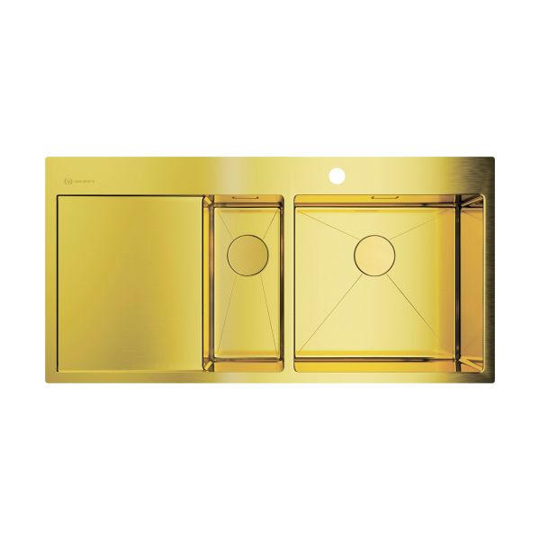 • Гарантия на мойки из нержавеющей стали с PVD-покрытием: 15 лет; • Метод производства: ручное; • Оригинальный цвет: светлое золото; • Мойка для врезного монтажа; • Японская высококачественная хромоникелевая нержавеющая сталь с покрытием PVD; • Матовая полировка, устойчивая к появлению царапин; • Упаковка обеспечивает максимально безопасную транспортировку. Мойка упакована в пакет из нетканного материала, уголки из пенопласта, картонную коробку; • Корпус мойки обработан специальным шумоподавляющим составом. • Комплектация: крепление, донный клапан, выпуск, сифон.