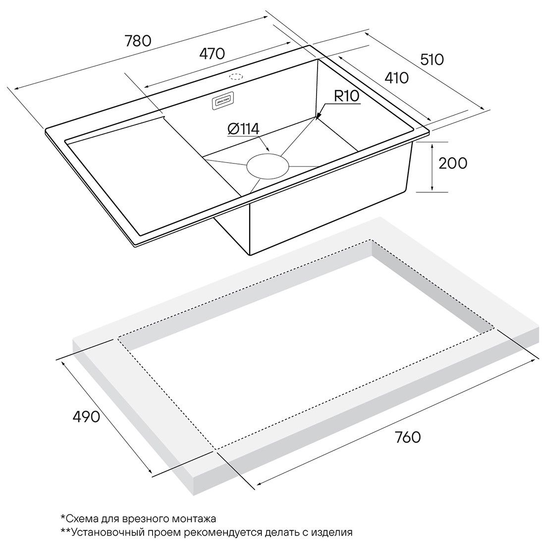 Монтаж:встраиваемая сверху