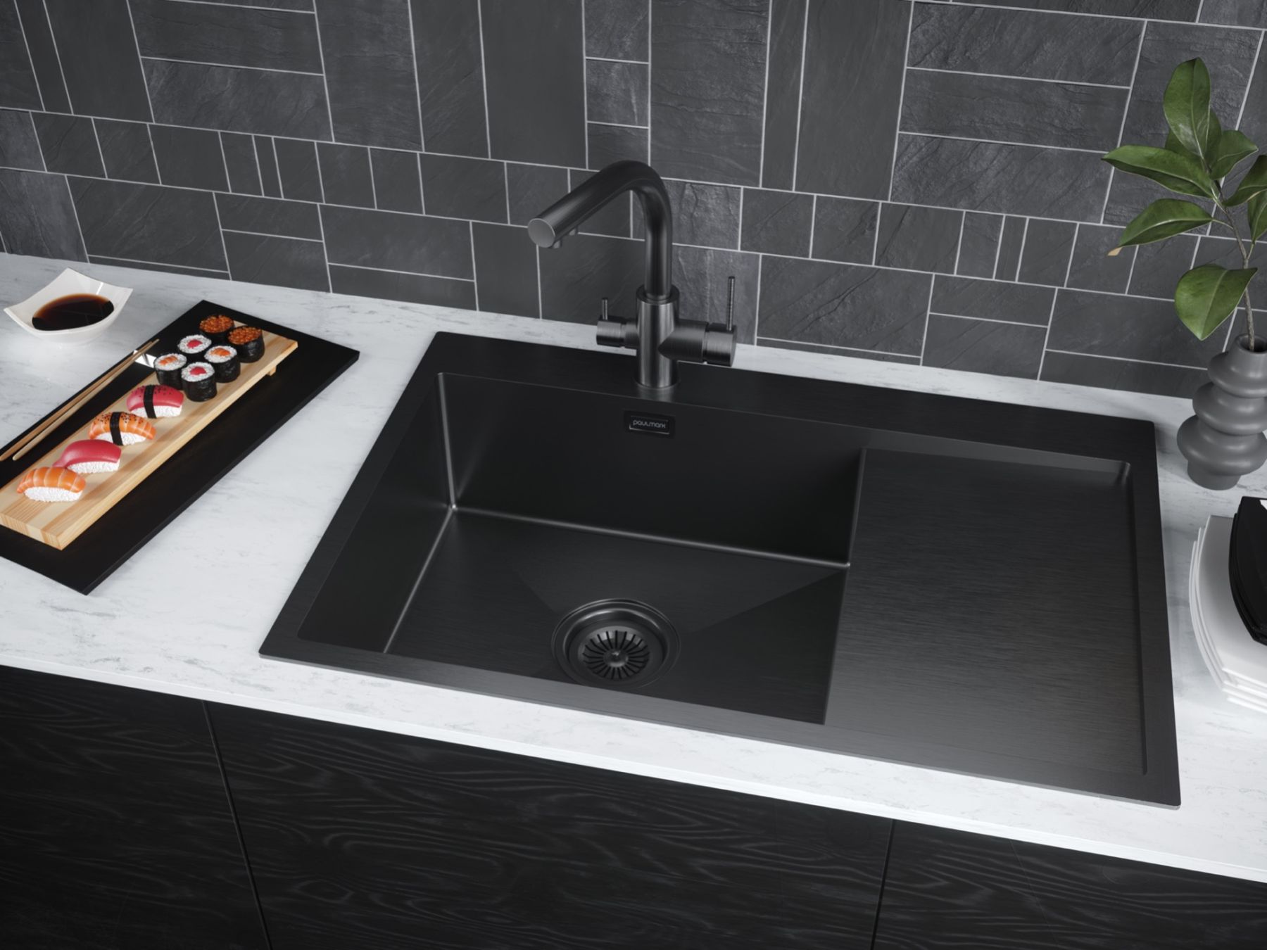 Мойка кухонная Paulmark Elde PM807851-GML левая воронёная сталь