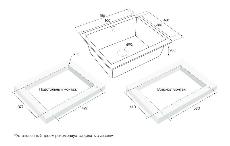 Возможен подстольный, врезной монтаж или монтаж вровень со столешницей.