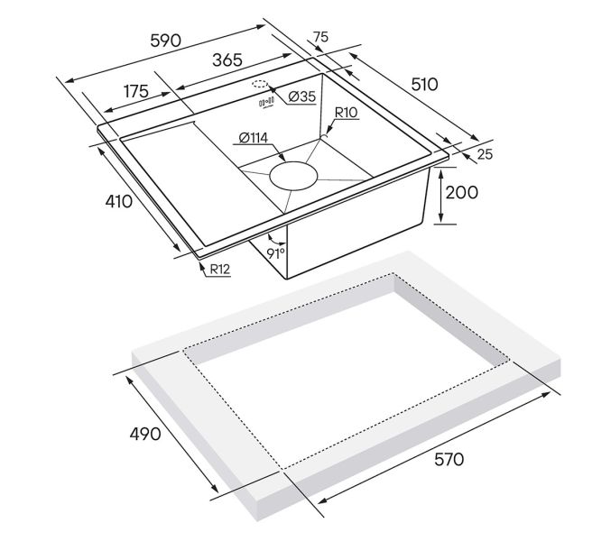 встраиваемая сверху