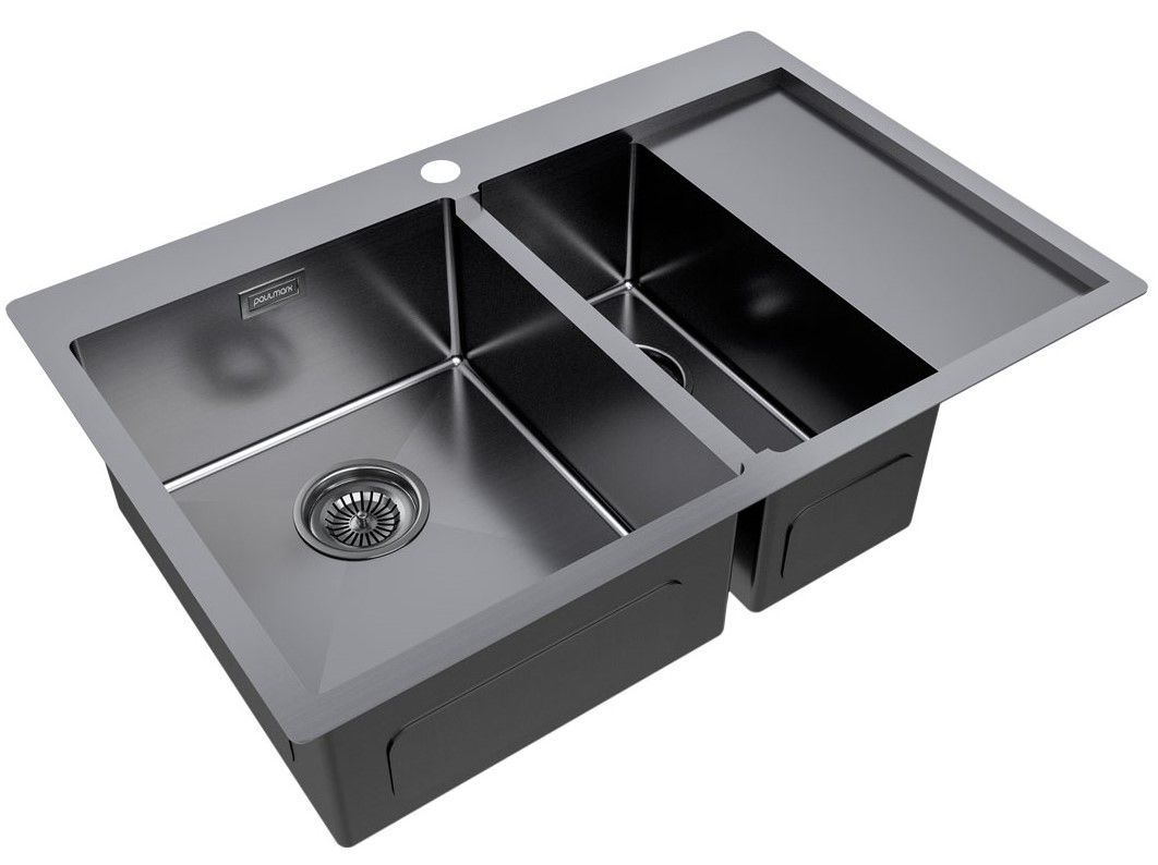 Мойка кухонная Paulmark Kroner PM227851-GML левая воронёная сталь купить