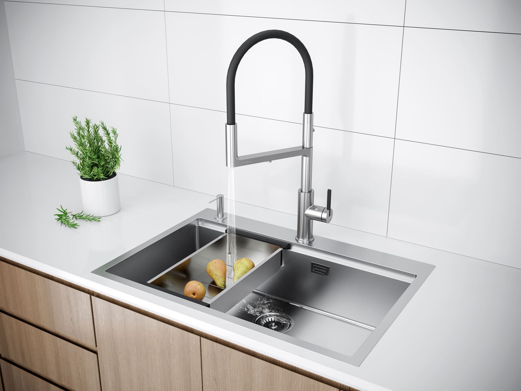 Мойка кухонная из нержавеющей стали, артикул PM707551-BSИзготовлена из нержавеющей стали, обладающей высокой коррозионной стойкостью, большим запасом механической прочности, а также устойчивостью к воздействию кислот и других химически активных соединений.Готовое отверстие для кухонного смесителя и дозатора.Имеет шумопоглощающее покрытие Stille® на внешней стороне чаши;